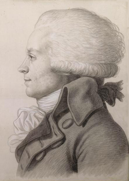 So I guess the way it worked in practice was you used the physiognotrace to draw the outline of the person (or just the silhouette of their face) and then filled in the rest by hand. For example, here's Maximilien Robespierre in 1792: