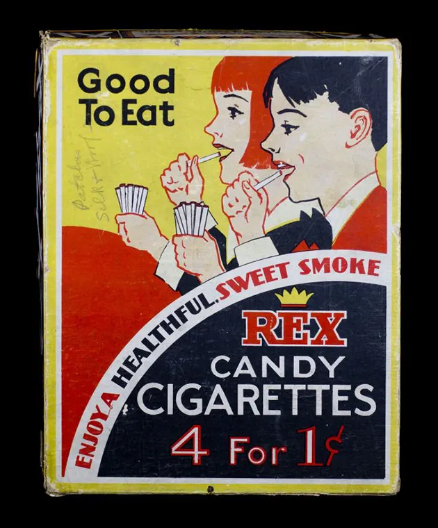 I was reminiscing about the candy cigarettes I and all my friends used to buy from the Good Humor truck and was wondering about the history but you know what? It's just what you would expect - lots of adults used to smoke cigarettes, so candy companies started making candy versions of them. They even used real tobacco company trademarks on some boxes, but tobacco companies looked the other way because they figured it might turn a generation of kids into smokers - and it did.