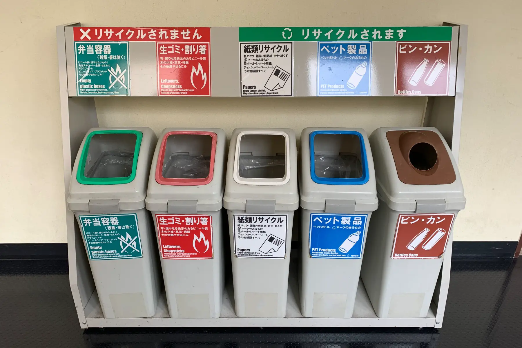 - Non-burnable waste (燃えないごみ/不燃ごみ, moenai gomi/funen gomi)