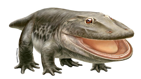 But other times, I am hit with an exquisite pang of longing upon realizing that I will never be able to encounter this extinct animal in real life or even on video. This was the case when I learned about Stenokranio boldi, a new species of early tetrapod discovered in southwestern Germany, and, if the paleoart by Frederik Spindler is to believed, an extremely chill and happy dude. Just look at this little fella! Has anyone ever been happier to see you?