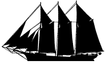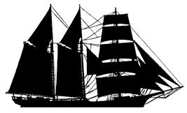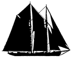 Tern Schooner a three master built in great numbers all along our shores between 1880 and 1920. These vessels were cargo carriers of between 200 and 400 tons, requiring a crew of six to eight. Our Tern is shown with all sails set except staysails between the masts. As the years went by these softwood vessels would become waterlogged, sails would wear out, and spars break. With the inroads made by the steamer, the old schooners were hard pressed to find a cargo. A few did survive until World War II.